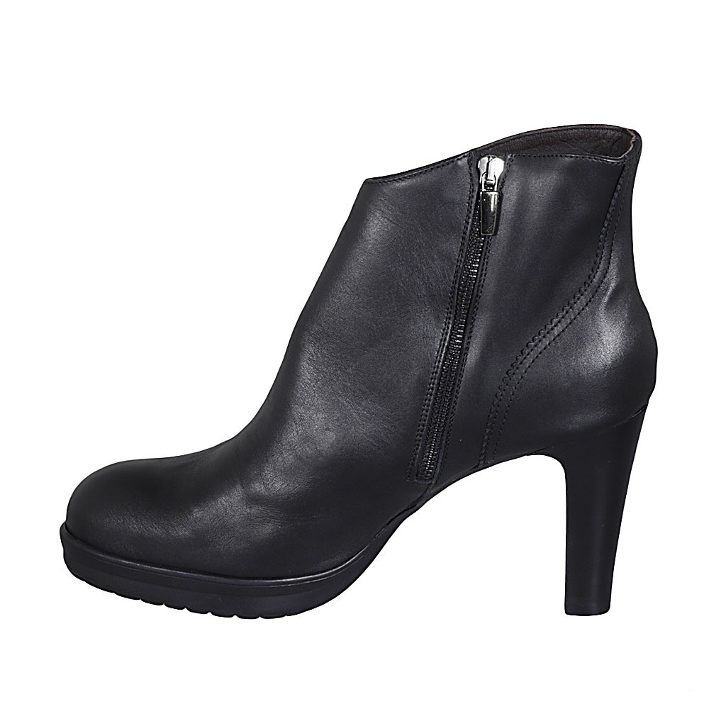 Botines con cremallera para mujeres con plataforma en piel de color negro tacon 10