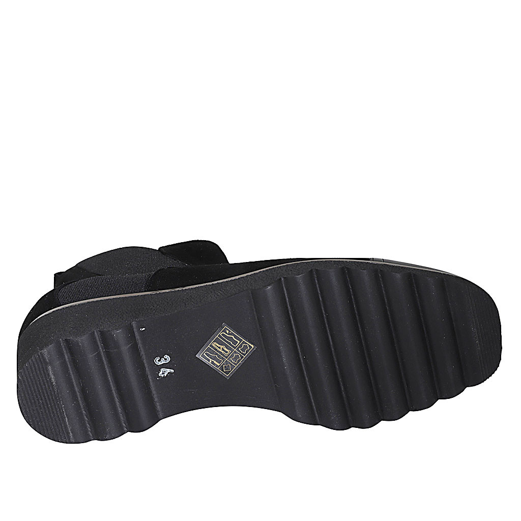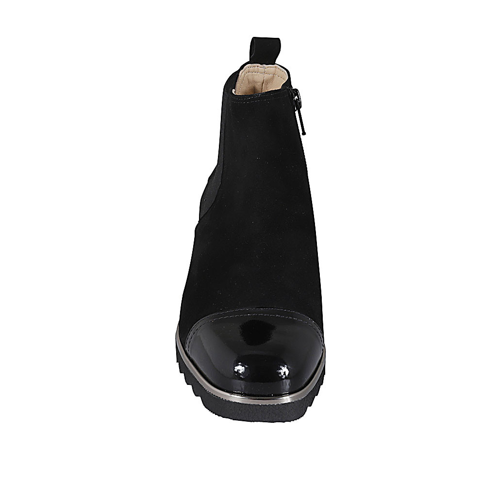 Botines para mujer con plantilla extraible, elastico y cremallera en gamuza y charol negro cuña 4 - Tallas disponibles:  32, 42