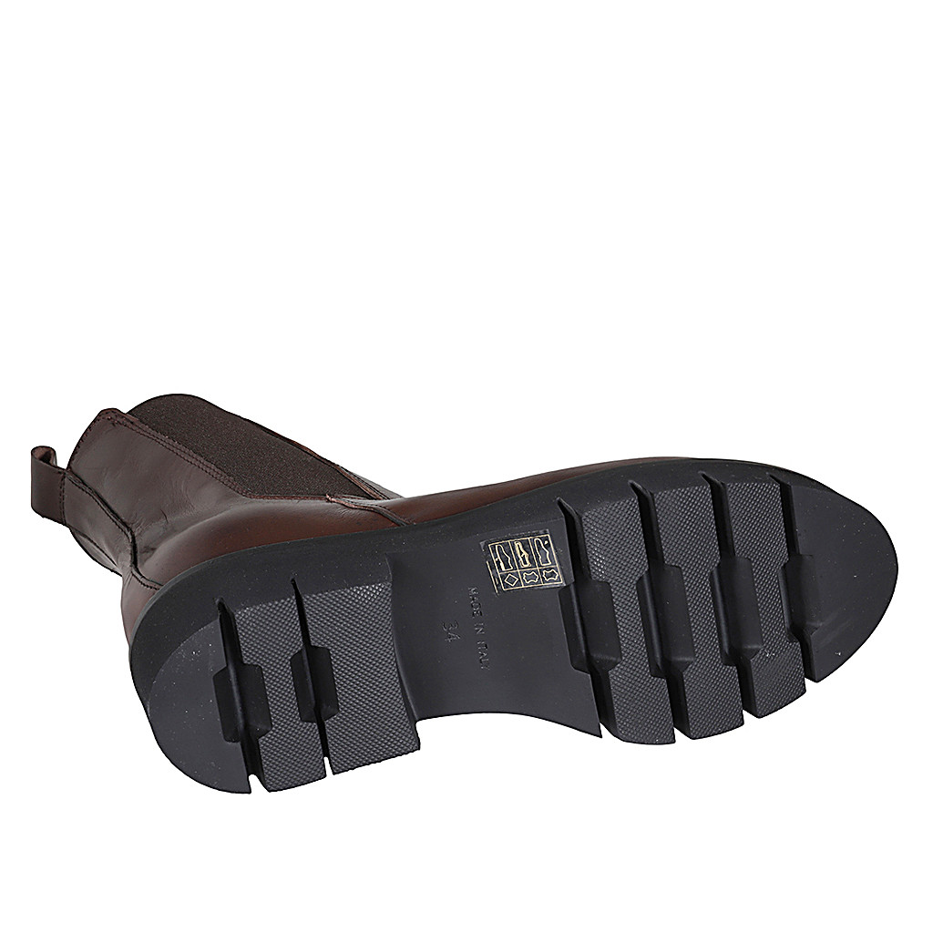 Botines para mujer con elasticos en piel marron tacon 3 - Tallas disponibles:  34, 43, 44, 46