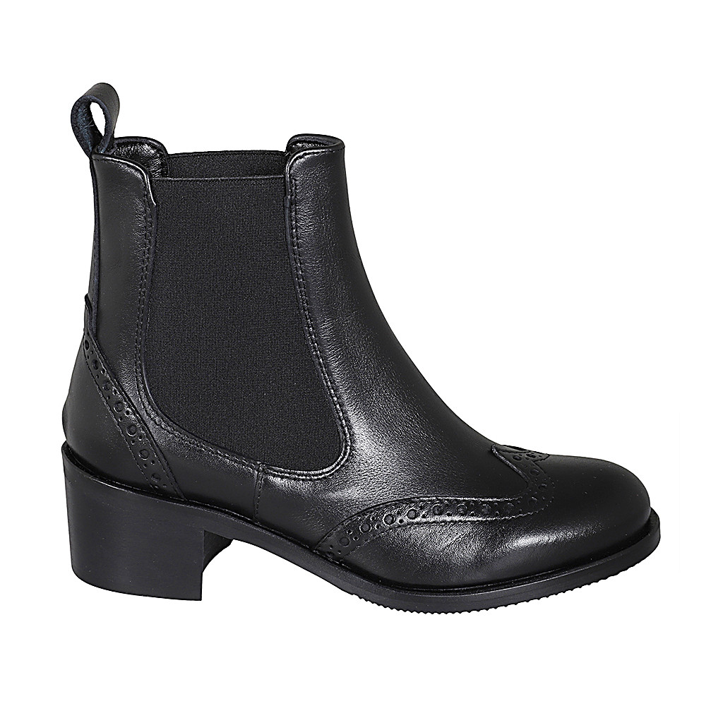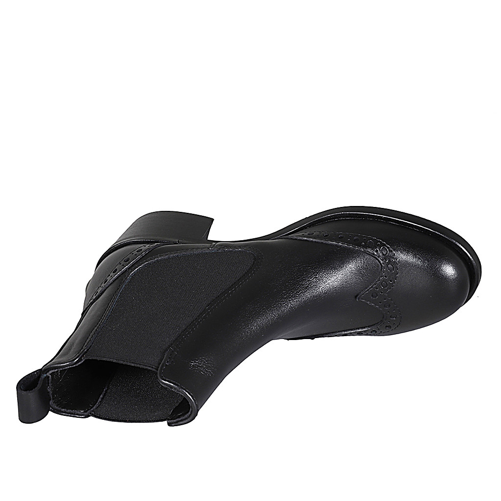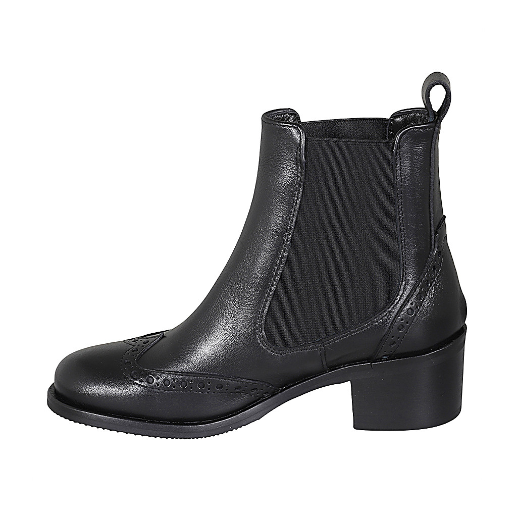 Botines para mujer con cremallera, elastico y accesorio en piel negra tacon 5