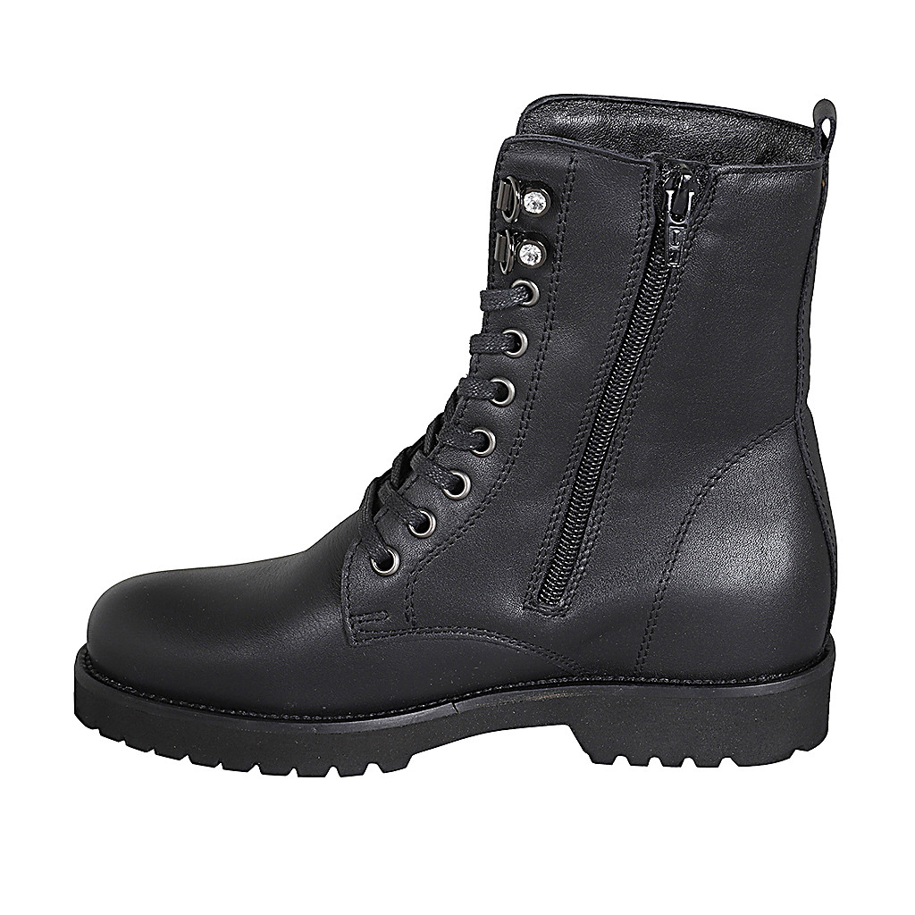 Botin para mujer en piel negra con cremallera y cordones tacon 3 - Tallas disponibles:  33, 35