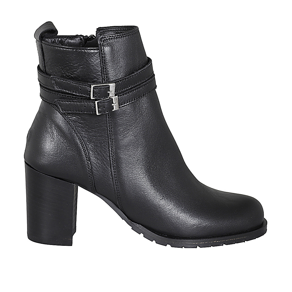 Botines para mujer con cremallera y hebillas en piel negra tacon 7