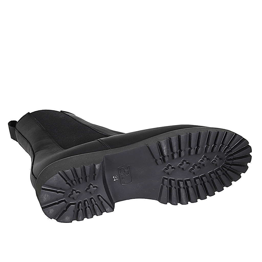 Botin para mujer con elasticos, doble monk strap y punta de ala en piel negra tacon 3