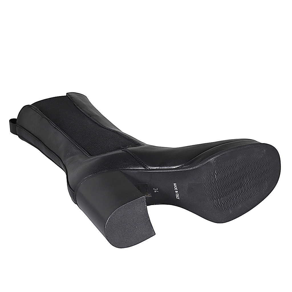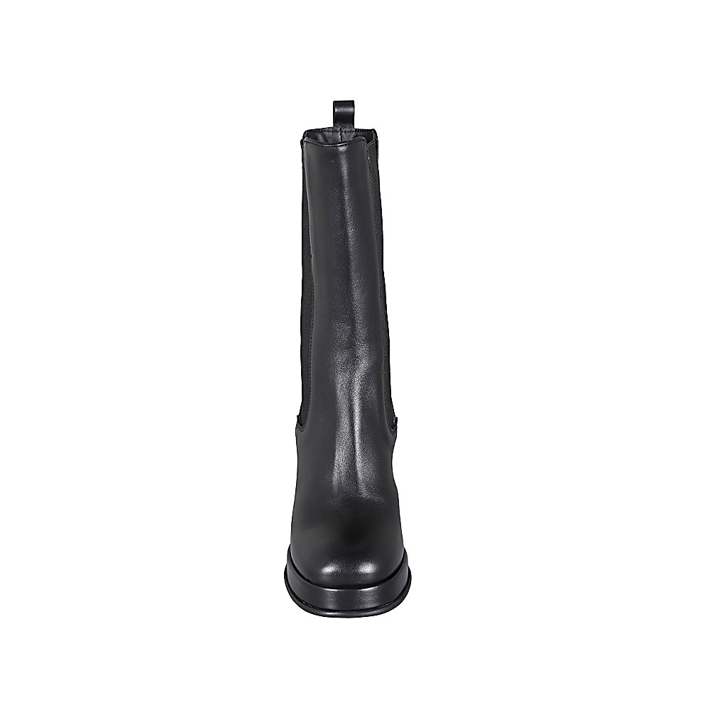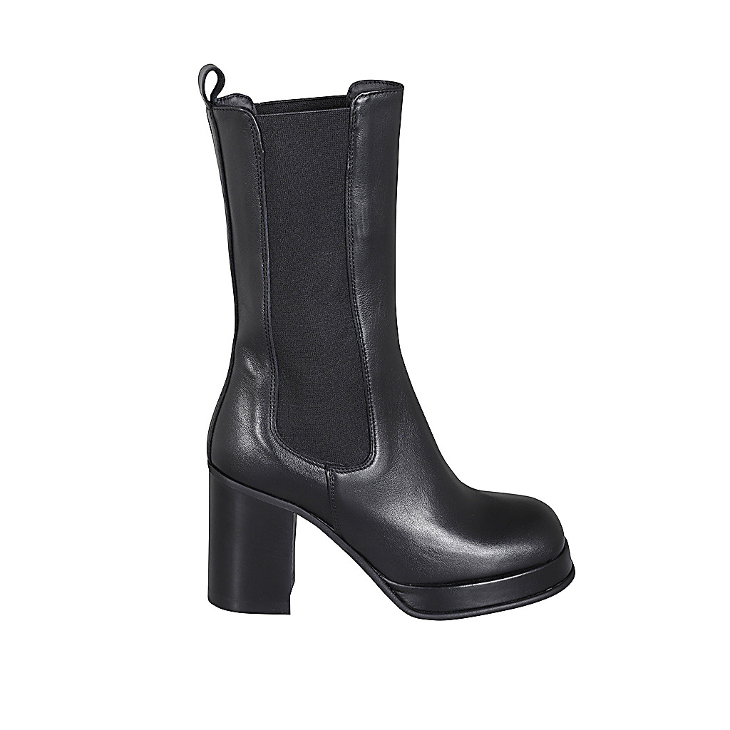 Botin alto para mujer en piel negra con elasticos y plataforma tacon 8