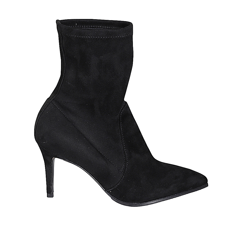 Mocasin con punta cuadrada y elasticos para mujer en gamuza negra tacon 1