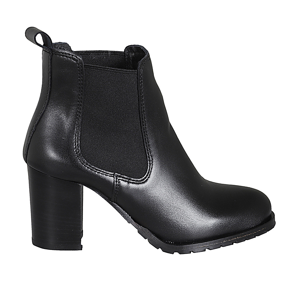 Botines para mujer en gamuza y material elástico negro con cremallera tacon 5
