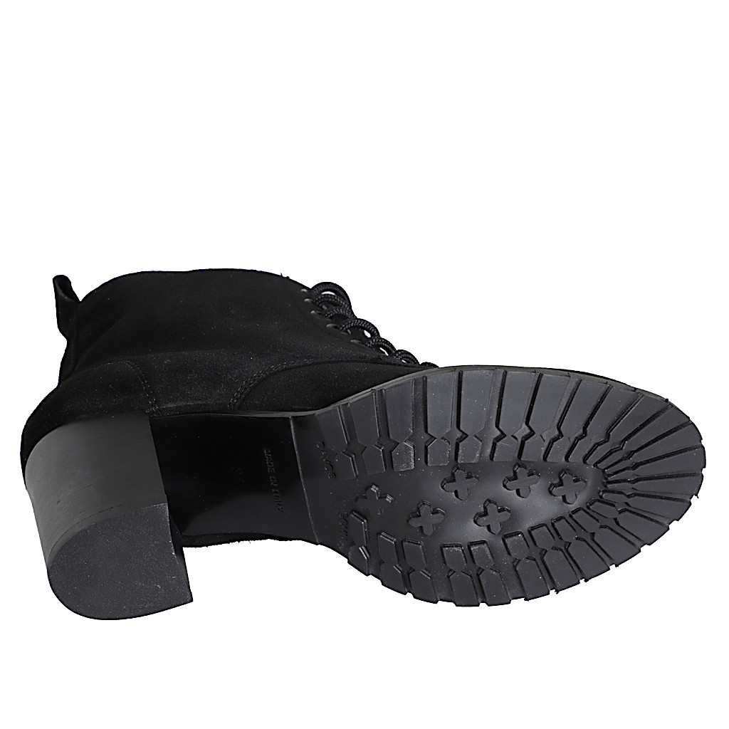 Botin de cordones con punta tonda para mujer con cremallera interna en gamuza color negro y tacon 7