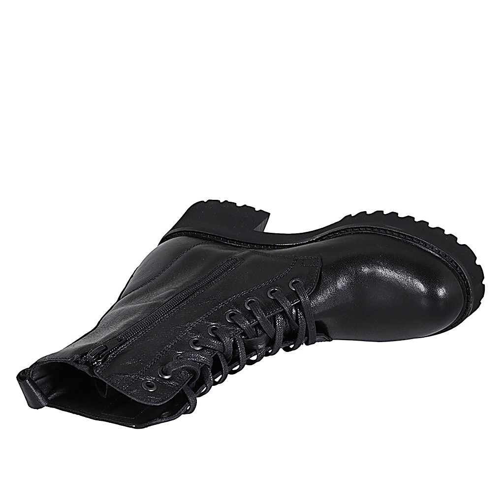 Botines de cordones para mujer con cremallera interna en piel de color negro tacon 5