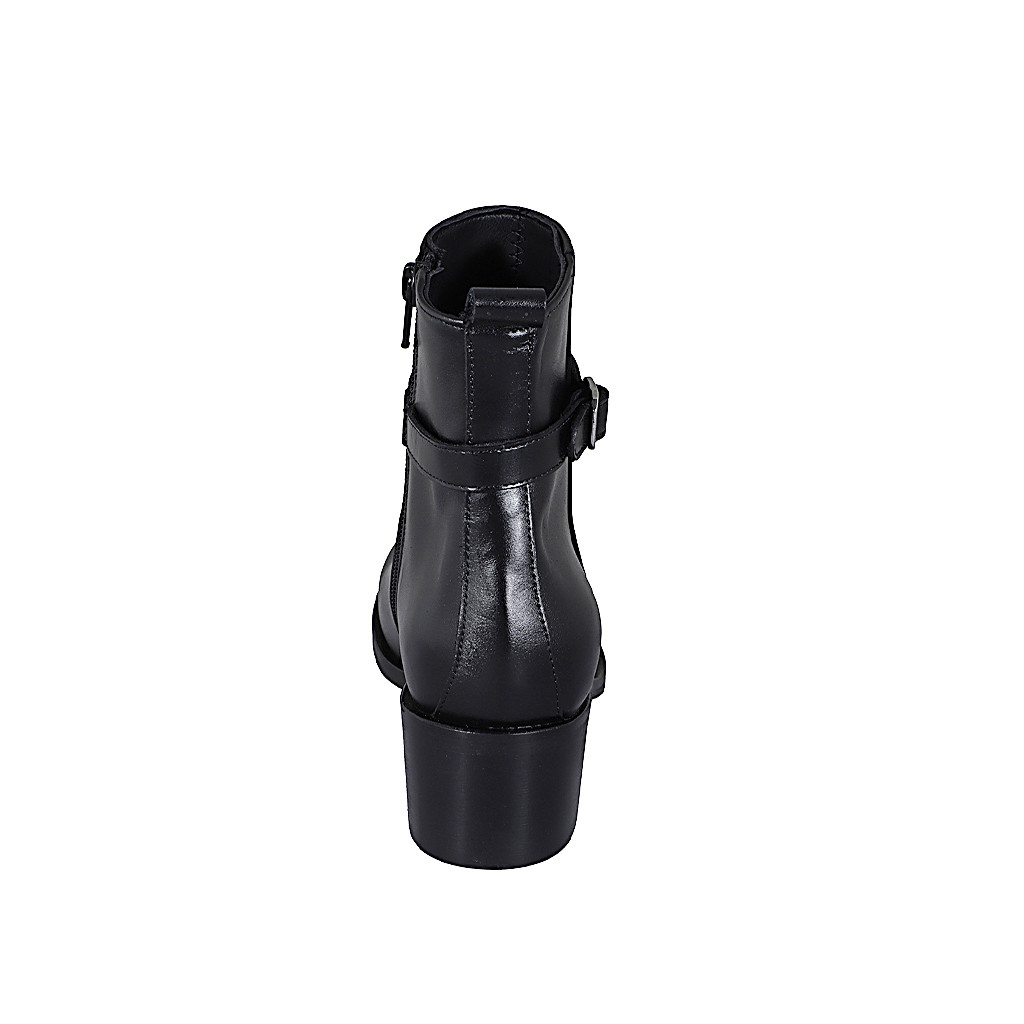 Botines con hebilla y cremallera para mujer en piel cognac tacon 5