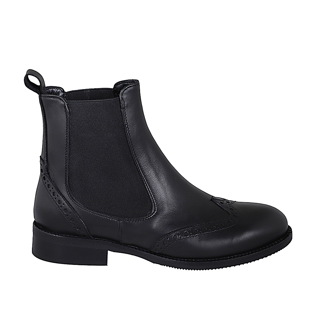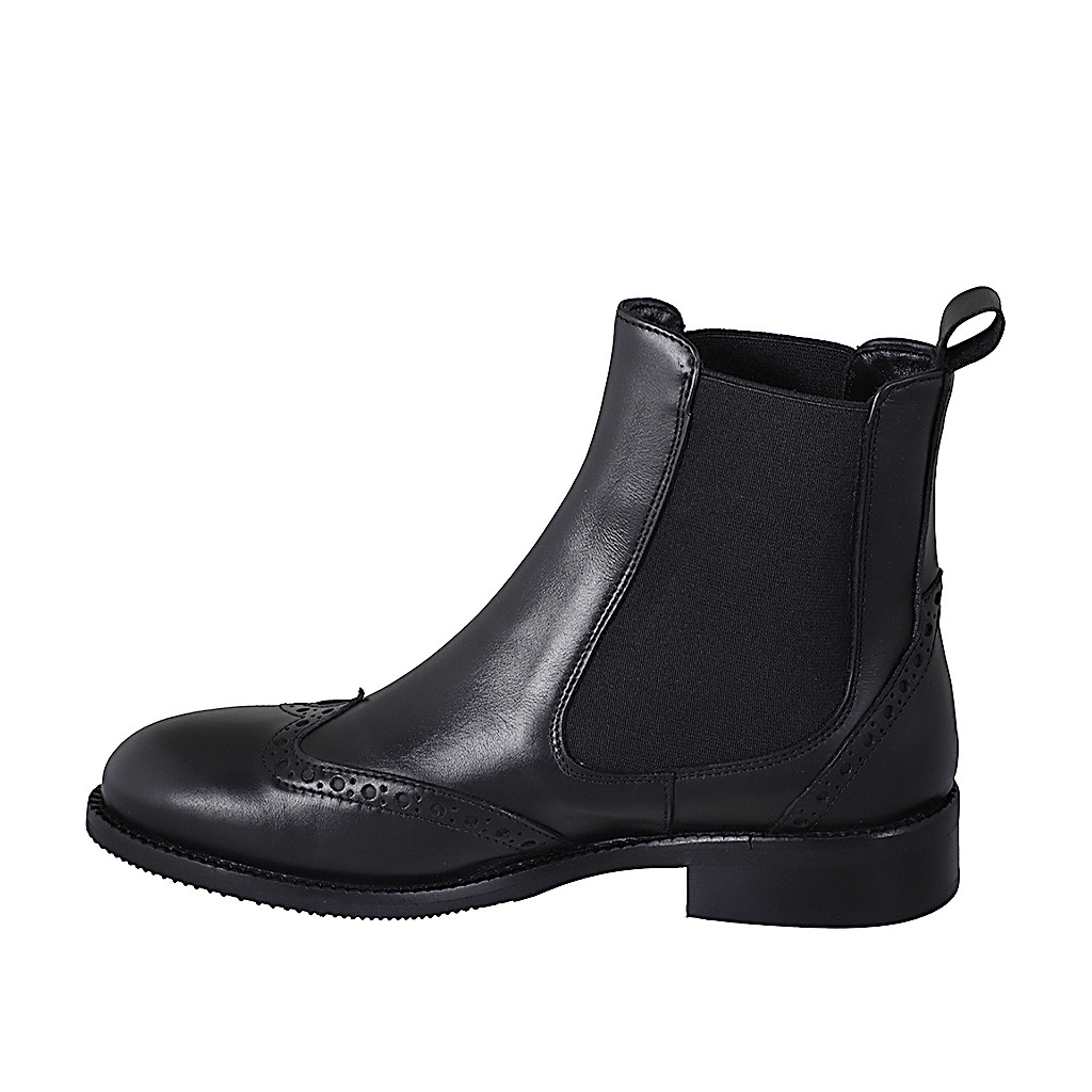 Botin Chelsea para mujer con elasticos y punta de ala en piel de color negro tacon 3