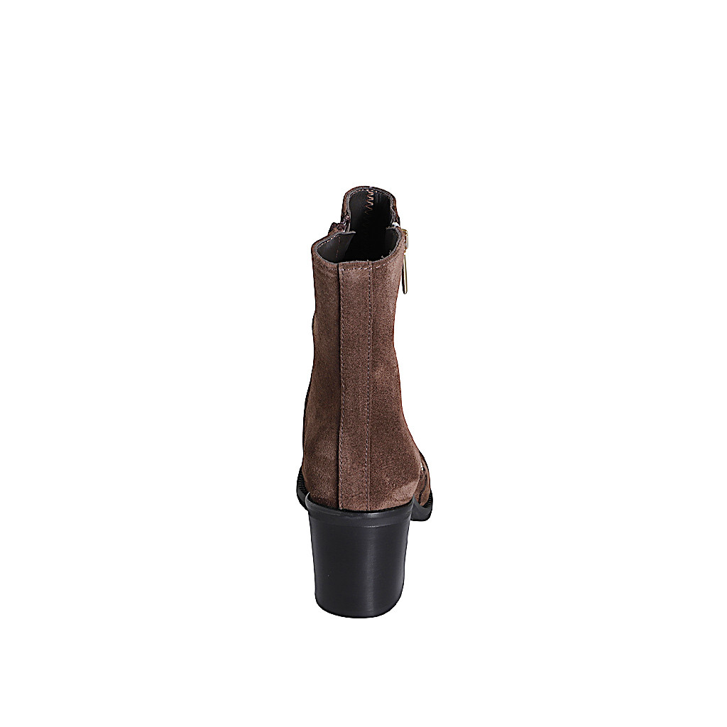Botines para mujer con cremalleras en gamuza marron tacon 6