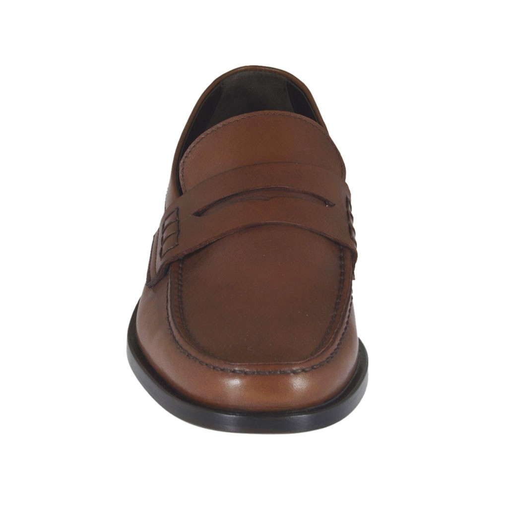 Mocasin clásico para hombre, en piel marron, fondo en cuero, forro en piel. Disponible en tallas pequeñas y en tallas grandes.