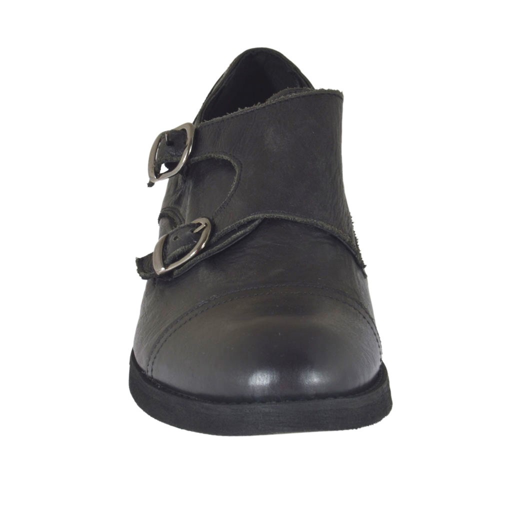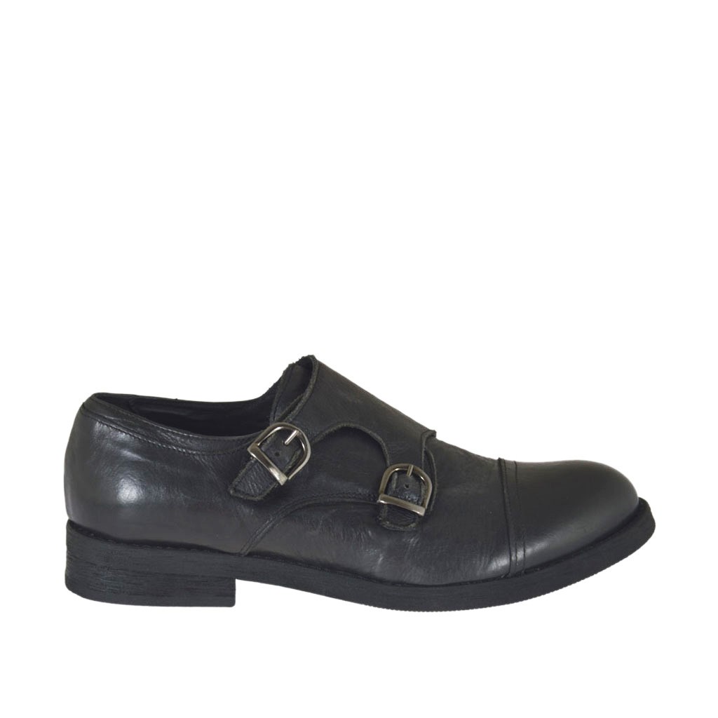 Zapato elegante para hombre con puntera y dos hebillas en piel negra