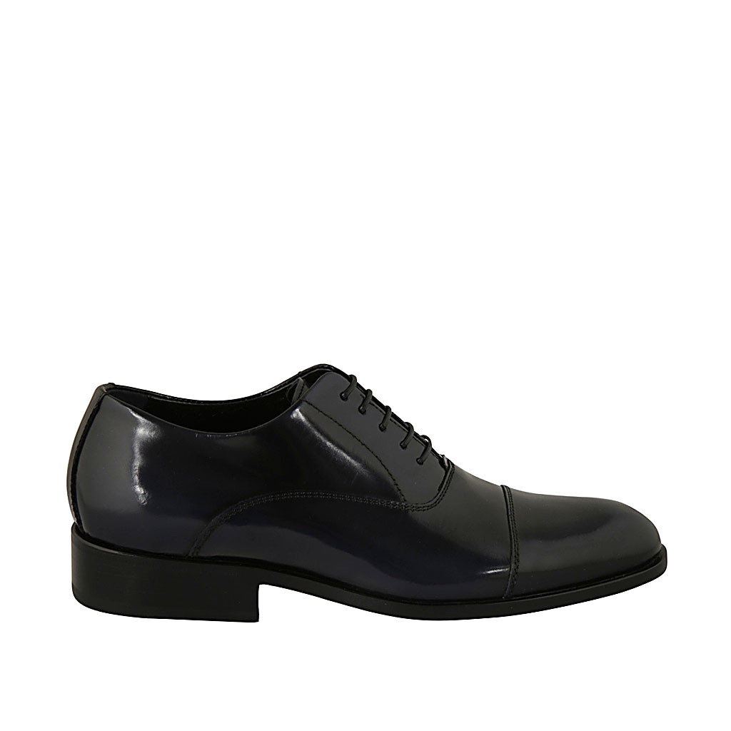 Zapato oxford elegante con cordones y puntera para hombre en piel cepillada azul - Tallas disponibles:  36, 47, 50
