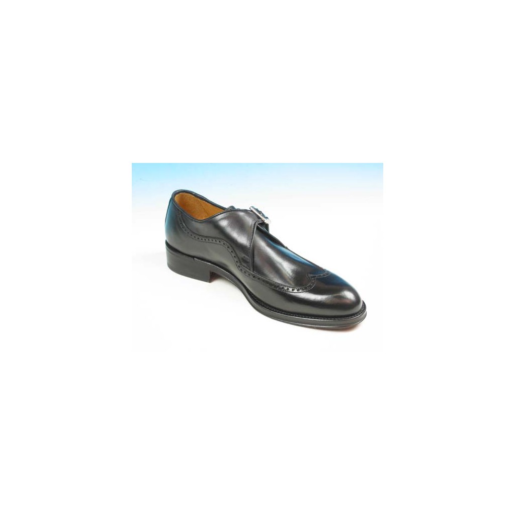 Botines para mujer en piel negra con cremallera y hebilla tacon 5
