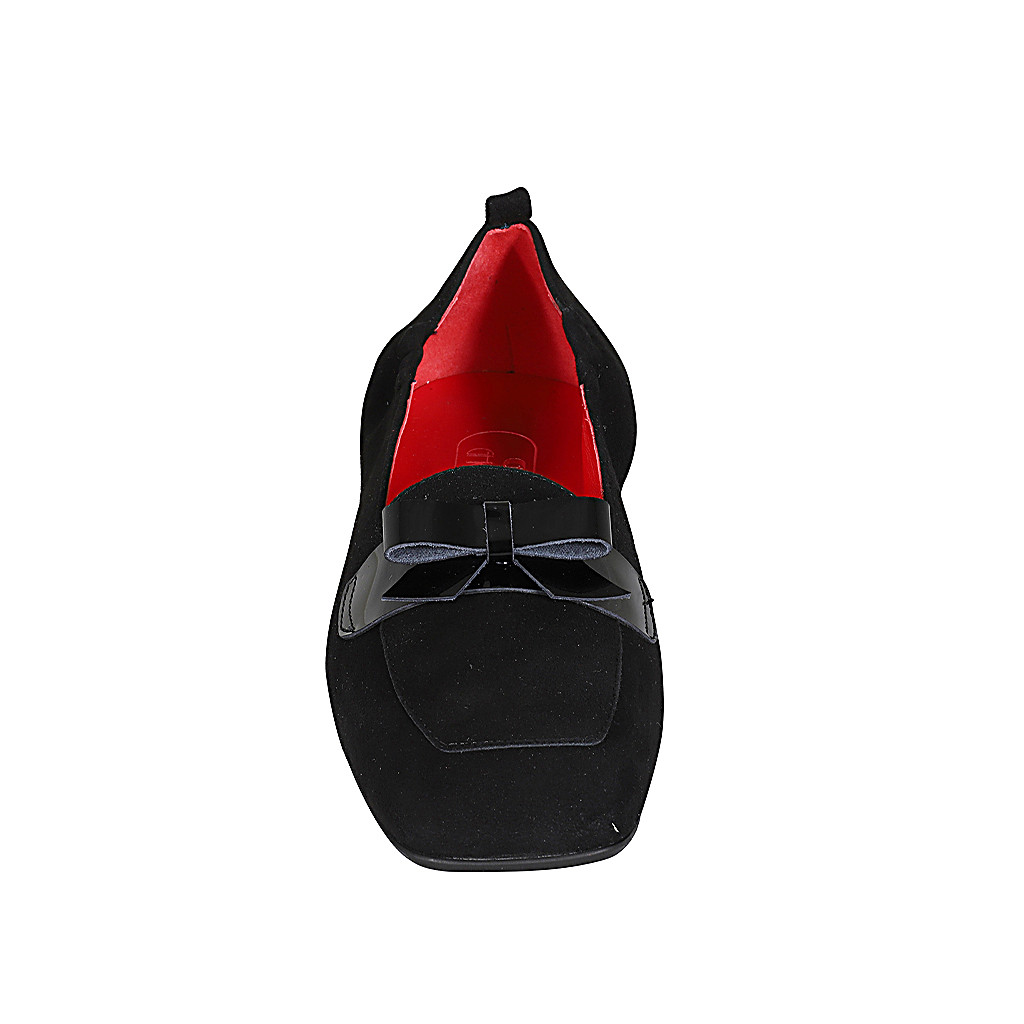 Botin para mujer con cordones, hebilla y cremallera en piel negra y imprimida molticolor tacon 5
