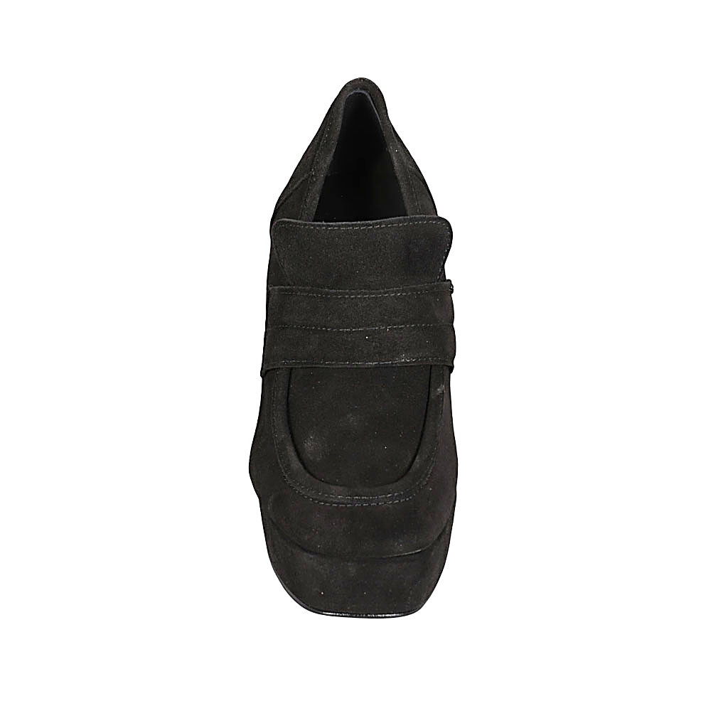 Mocasino para mujer con plataforma en gamuza negra tacon 9 - Tallas disponibles:  42, 43