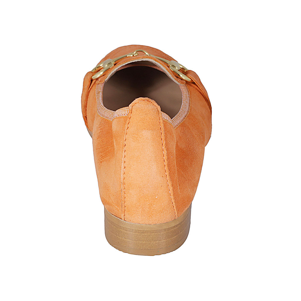 Mocasín para mujer con accesorio en gamuza naranja tacon 2