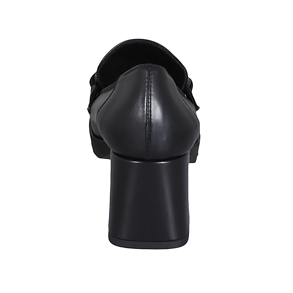 Mocasino para mujer en piel negra con accesorio y tacon 6 - Tallas disponibles:  44
