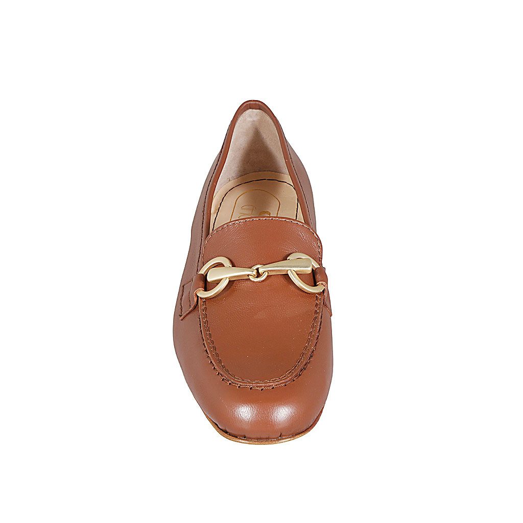 Mocasino para mujer en piel cognac con accesorio con tacon 3