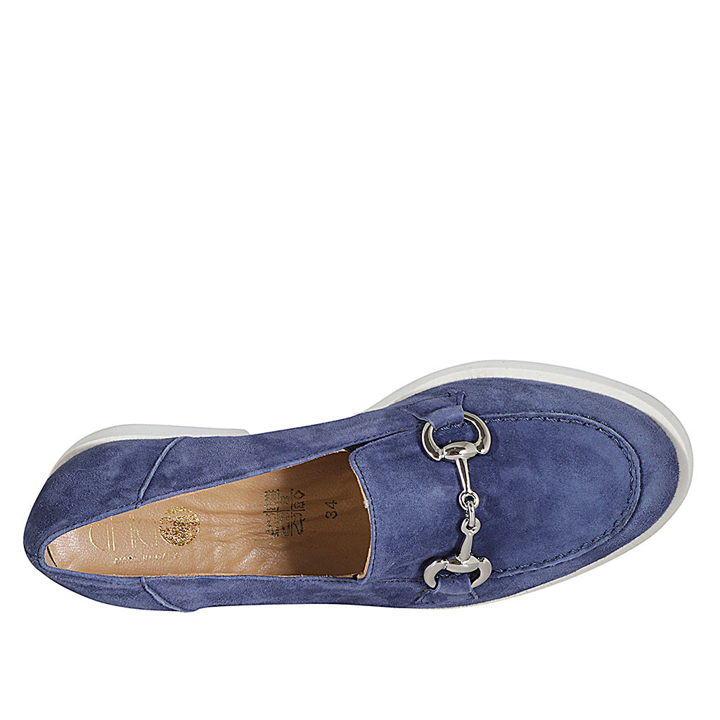 Mocasín para mujer con accesorio y plantilla extraible en gamuza azul tacon 3 - Tallas disponibles:  31