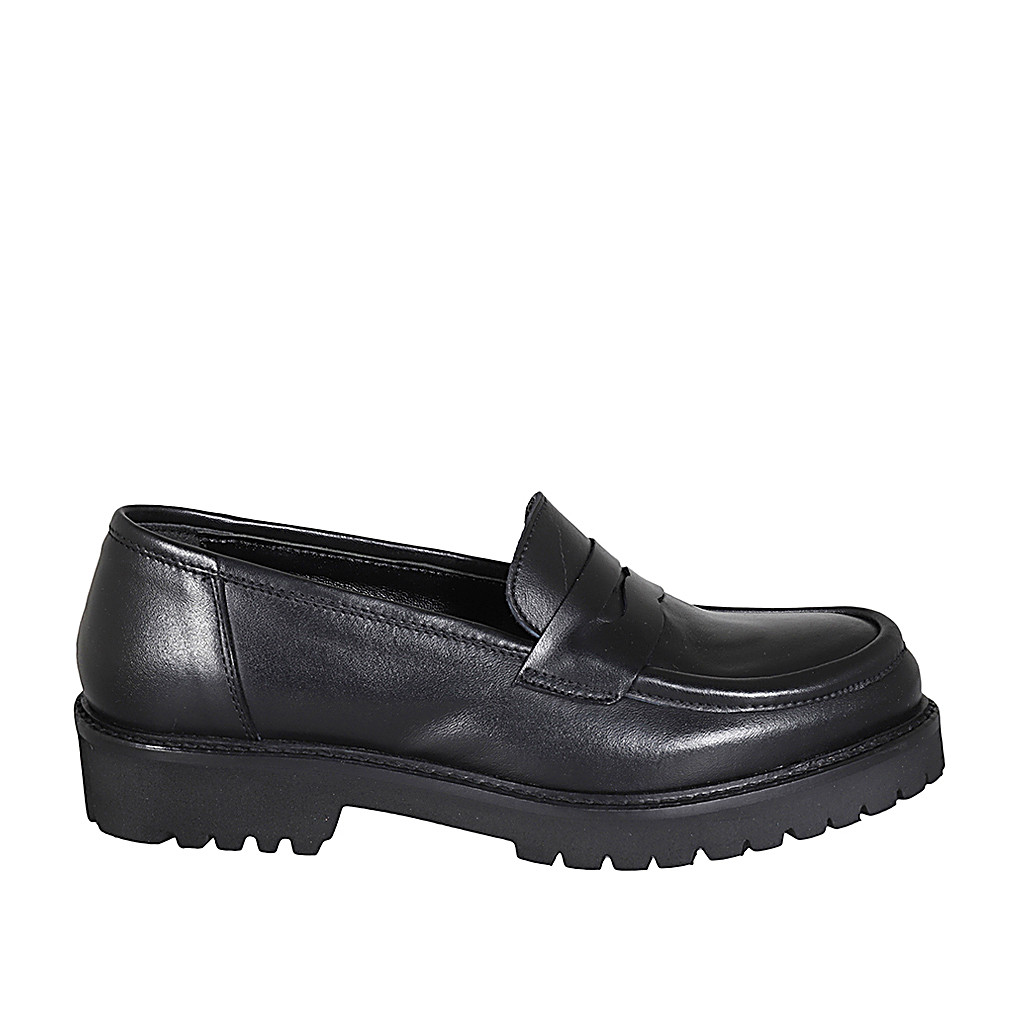 Mocasino para mujer en piel negra tacon 3