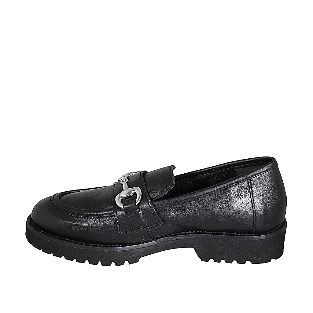 Sandalia de dedo en estilo gladiador con estras para mujer en piel negra tacon 1