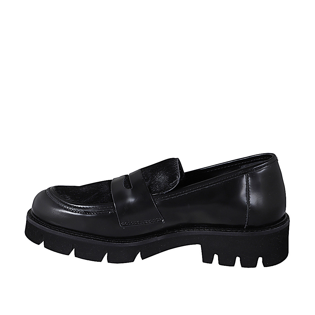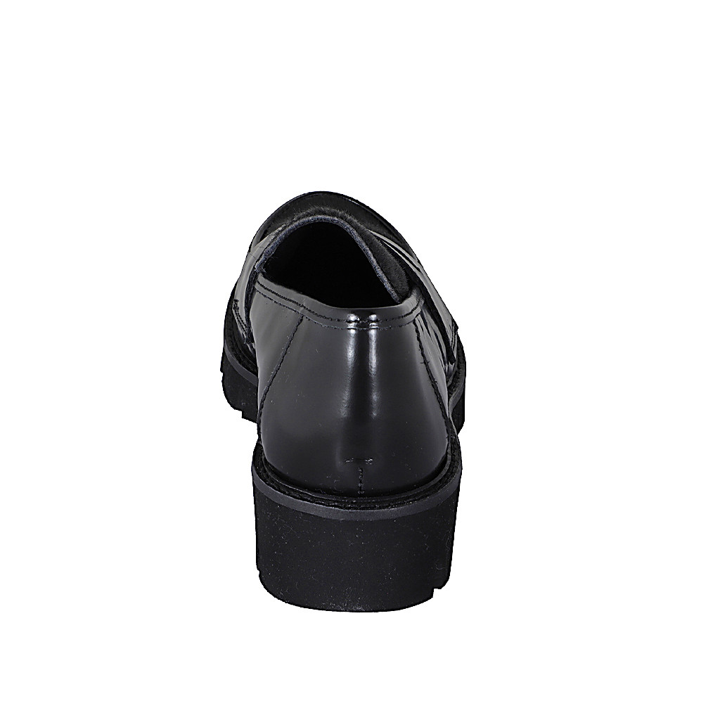 Zapato derby con cordones y punta de ala para mujer en piel cepillada negra tacon 3