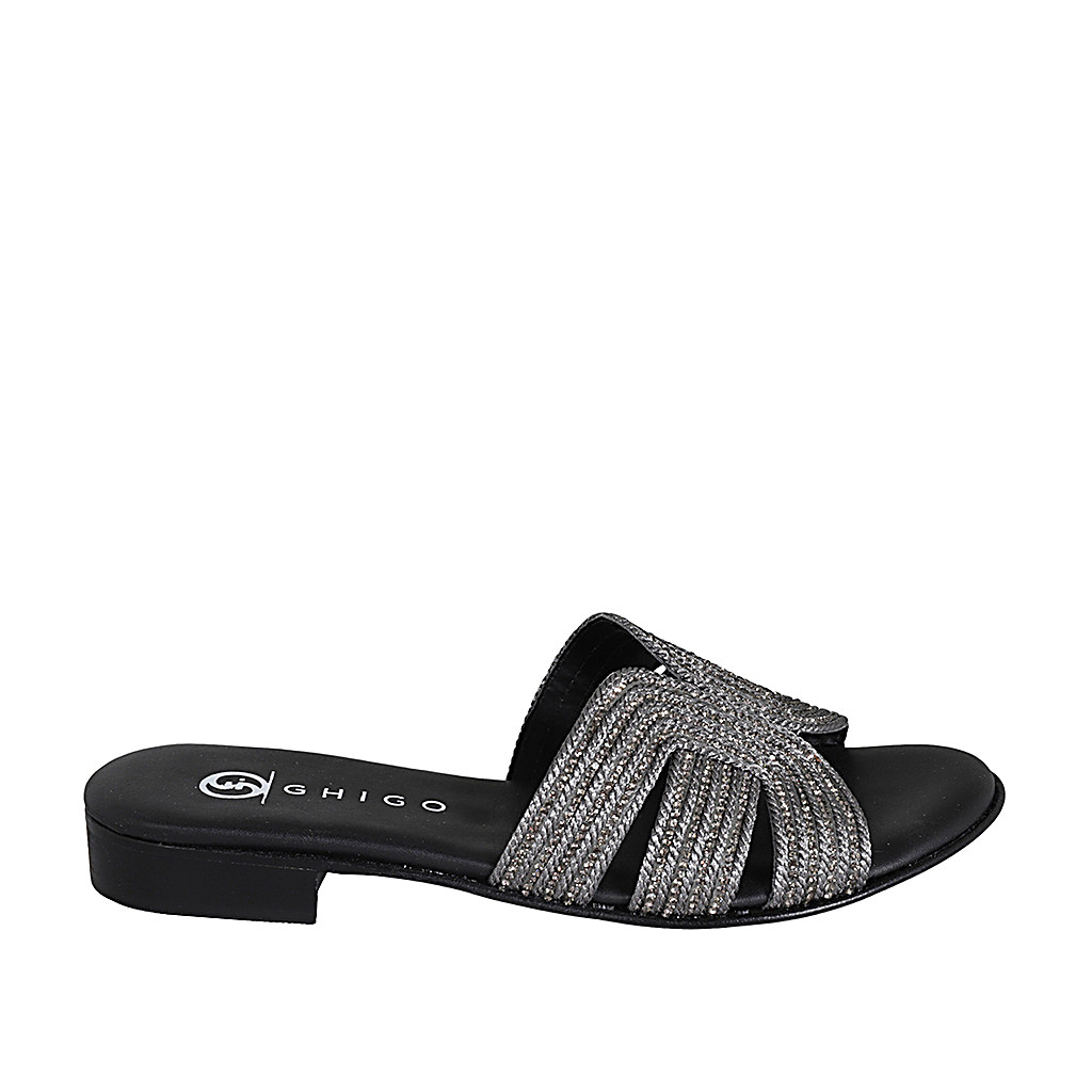 Sabo para mujer en piel blanca y laminada plateada tacon 2