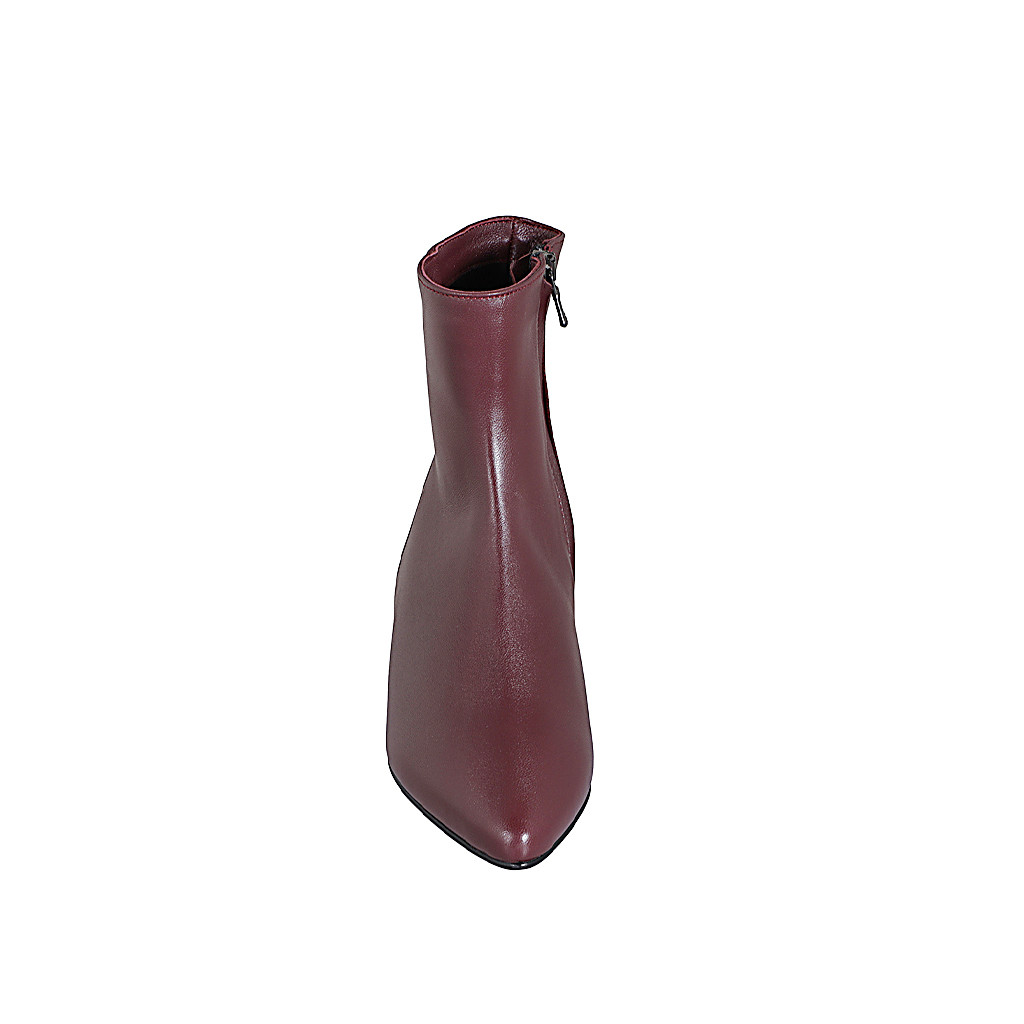 Botines para mujer con punta afilada y cremallera interior en piel de color granate tacon 2