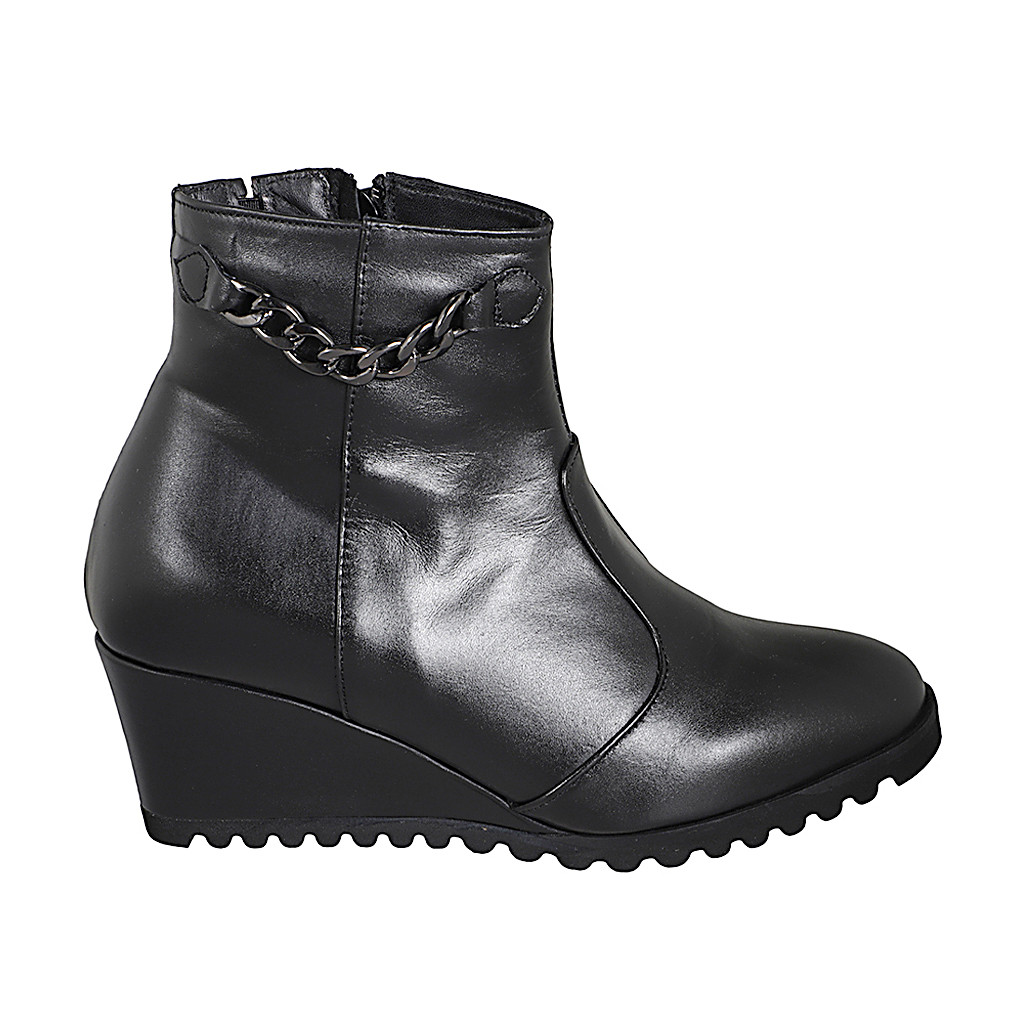 Botín de mujer con plantilla extraíble, cremallera y cadena en piel negra cuña 6 - Tallas disponibles:  32, 33, 34, 35