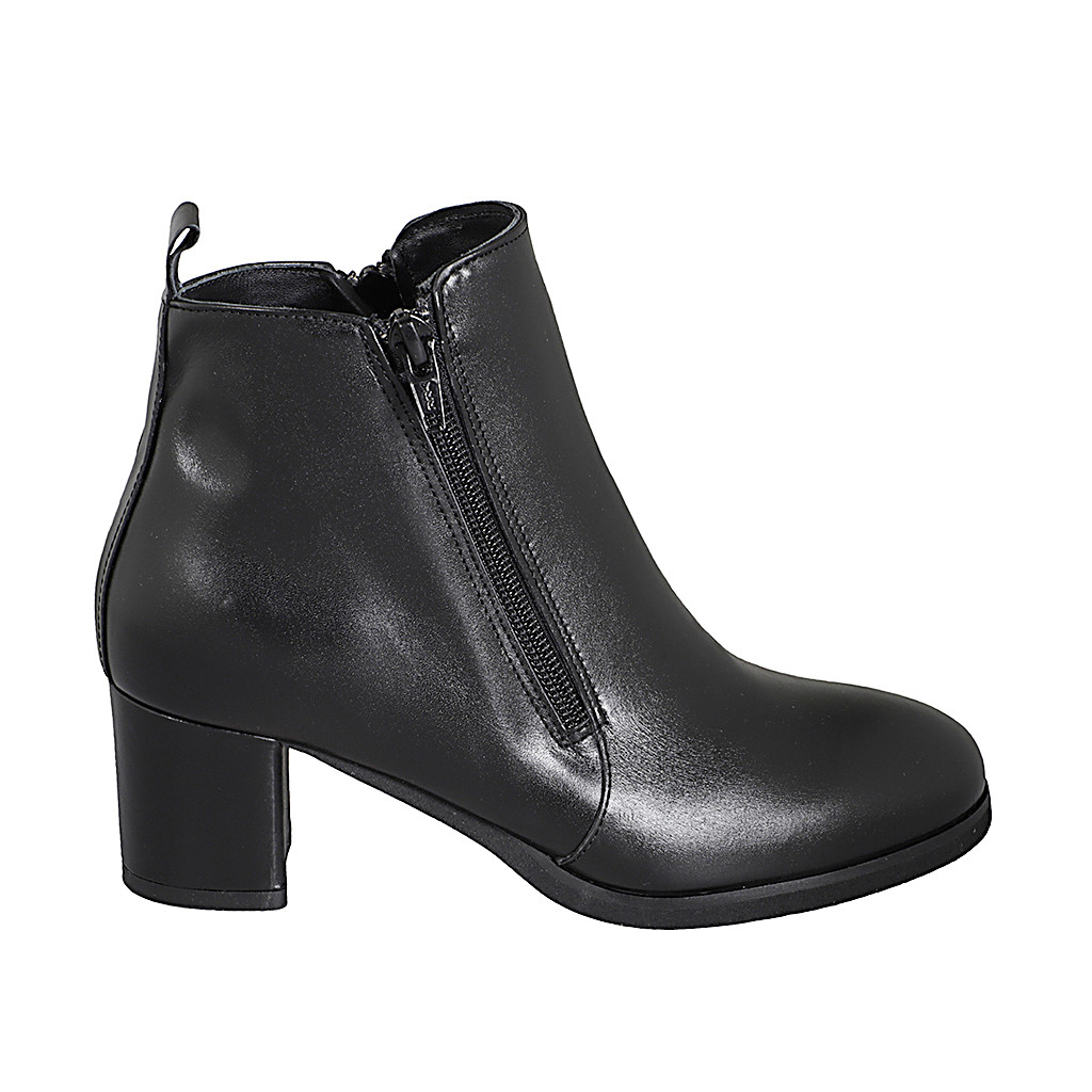 Botines para mujer en piel negra con cremalleras y plantilla extraible tacon 5 - Tallas disponibles:  31, 32, 33, 34, 35, 42, 43, 44, 45, 46