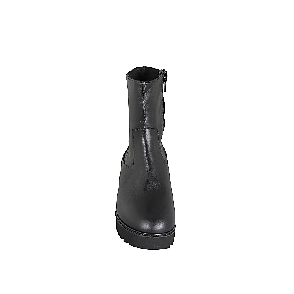 Botines para mujer con plantilla extraible, hebilla y cremallera en piel negra tacon 4