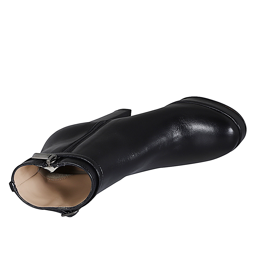 Botines para mujer en piel negra con hebilla y cremallera tacon 5