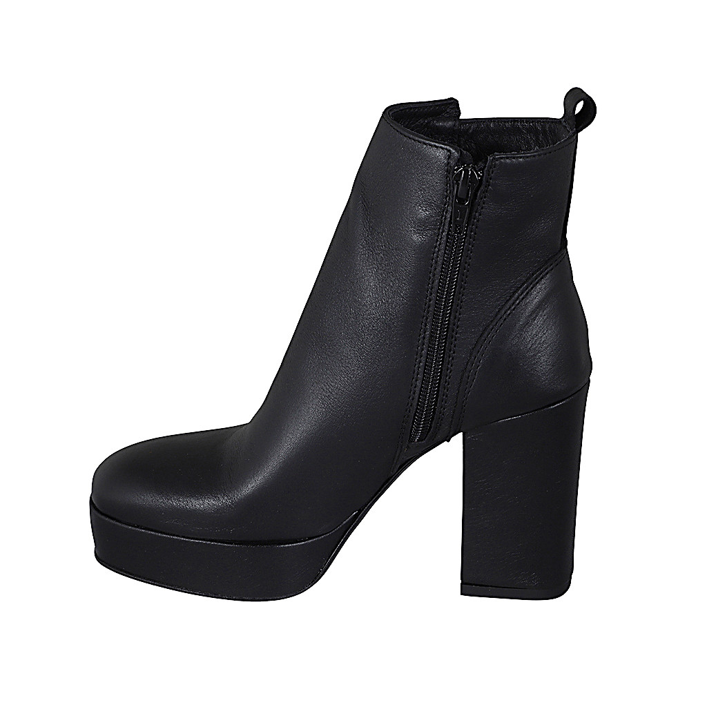 Botines altos para mujer con cremallera en piel negra tacon 7