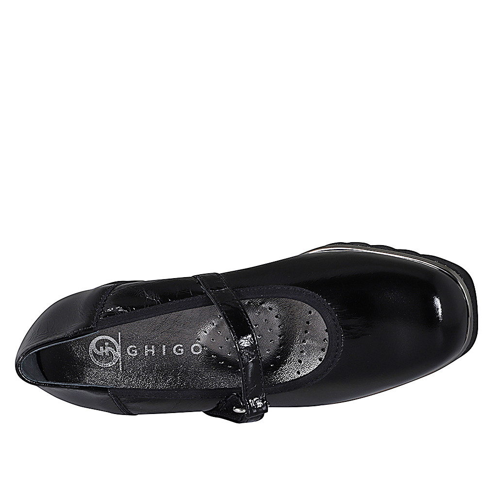 Zapato derby con cordones y punta de ala para mujer en piel cepillada negra tacon 3