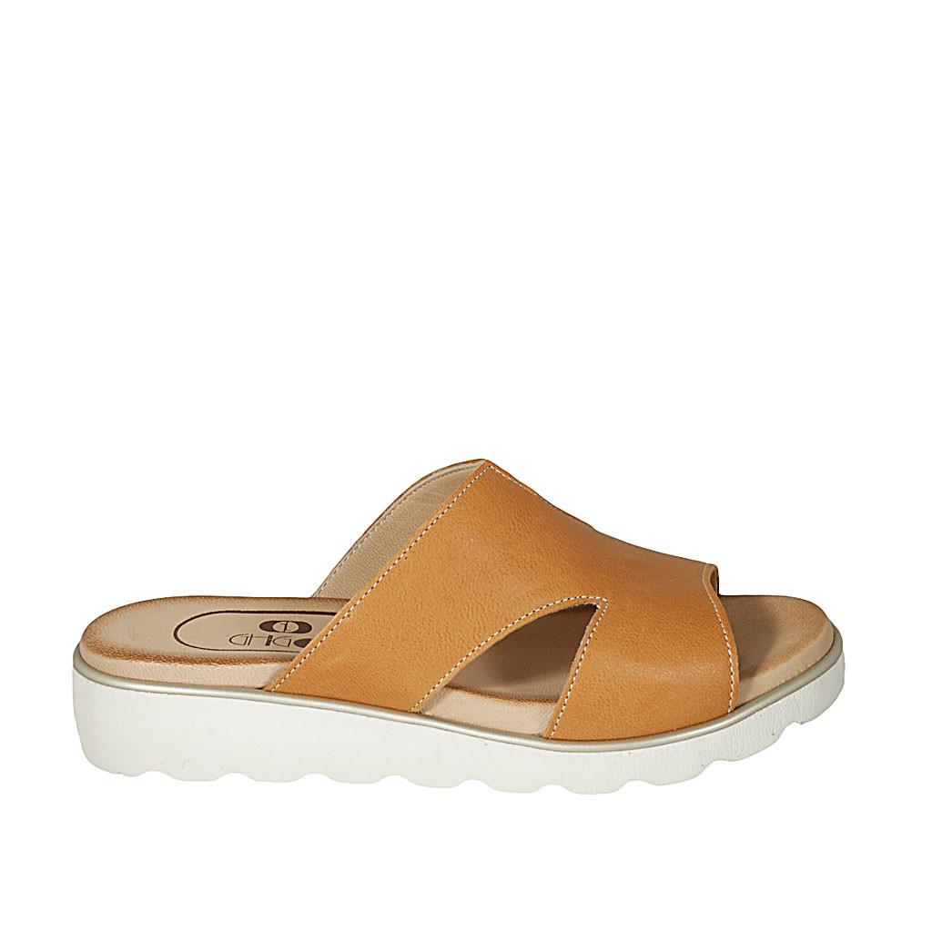 Sabo para mujer en piel cognac cuña 3 - Tallas disponibles:  42, 43