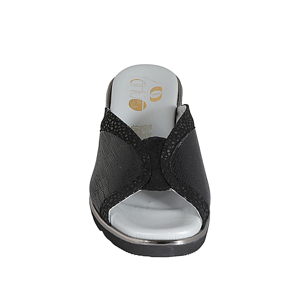 Sabo para mujer en piel imprimida y gamuza imprimida negra cuña 4 - Tallas disponibles:  42, 43