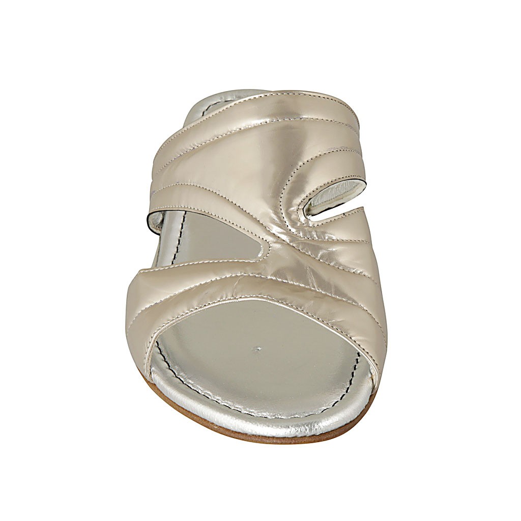 Sabo abierto para mujer en piel laminada platino bronceado tacon 2 - Tallas disponibles:  42
