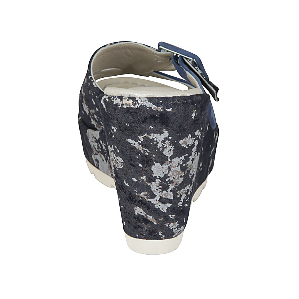 Sandalia con estrases en piel y gamuza de color negro tacon 1