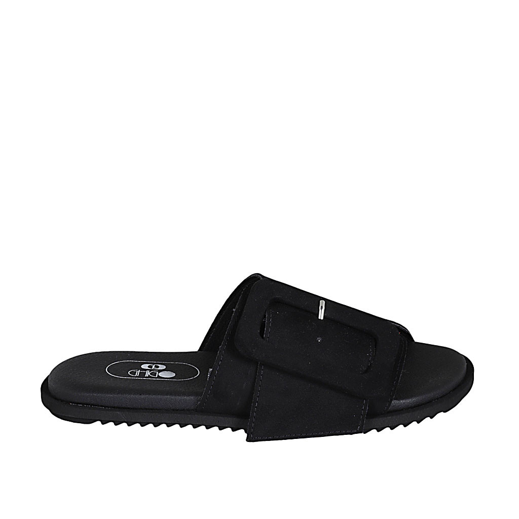 Sabo para mujer en gamuza negra con hebilla cuña 1 - Tallas disponibles:  32, 34