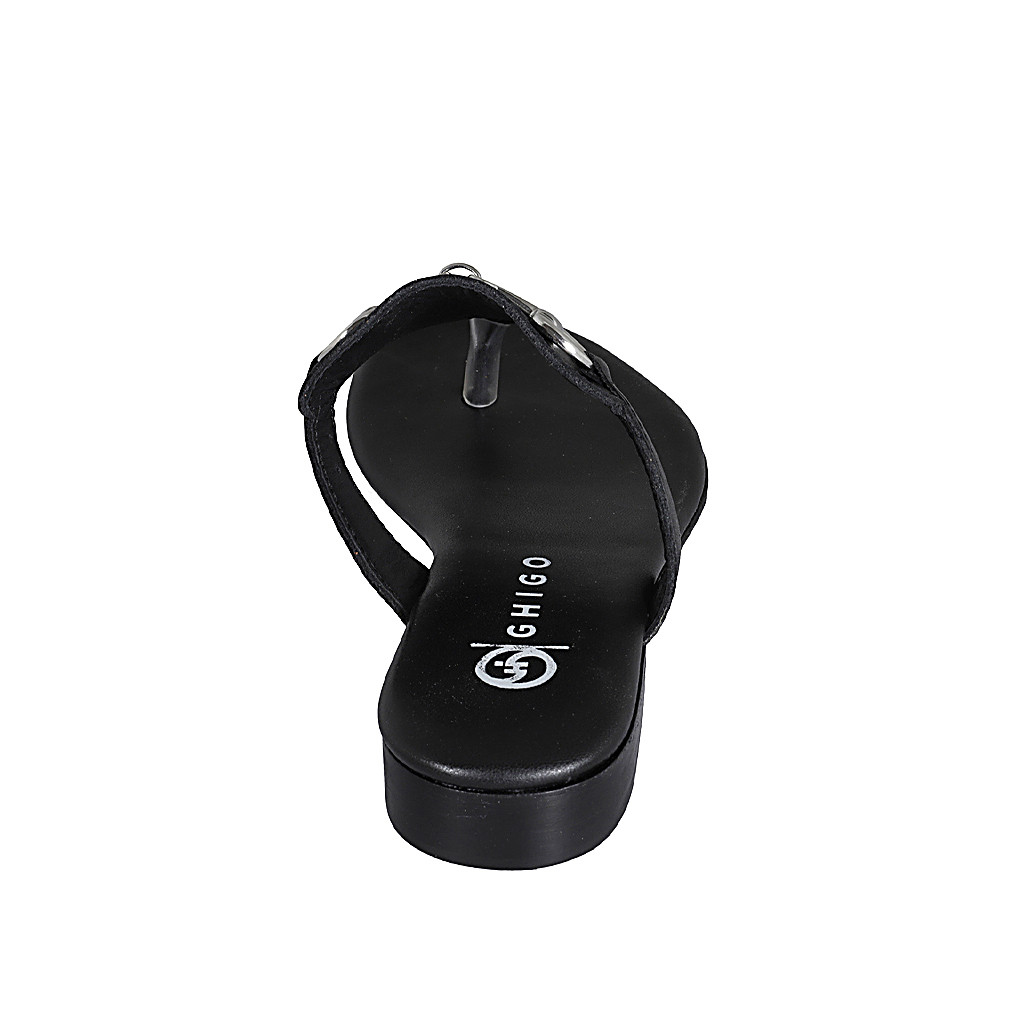 Chanclas de dedo con accesorio para mujer en piel negra tacon 2 - Tallas disponibles:  32, 35, 43, 44
