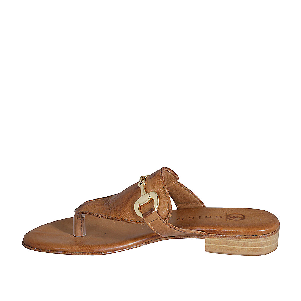 Chanclas de dedo con accesorio para mujer en piel cognac tacon 2 - Tallas disponibles:  32, 33, 35, 43