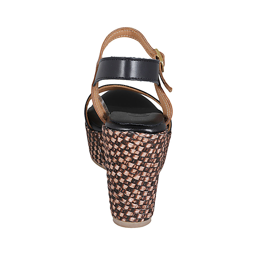 Sandalia para mujer con cinturon y plataforma en piel negra y cognac cuña trensada 9 - Tallas disponibles:  42, 43, 44