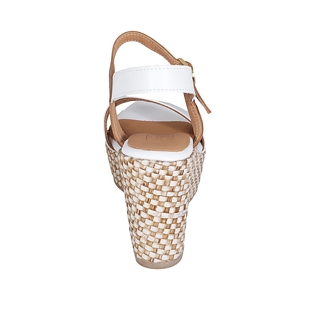Sandalia para mujer con cinturon y plataforma en piel blanca y cognac cuña trensada 9 - Tallas disponibles:  42, 43, 44