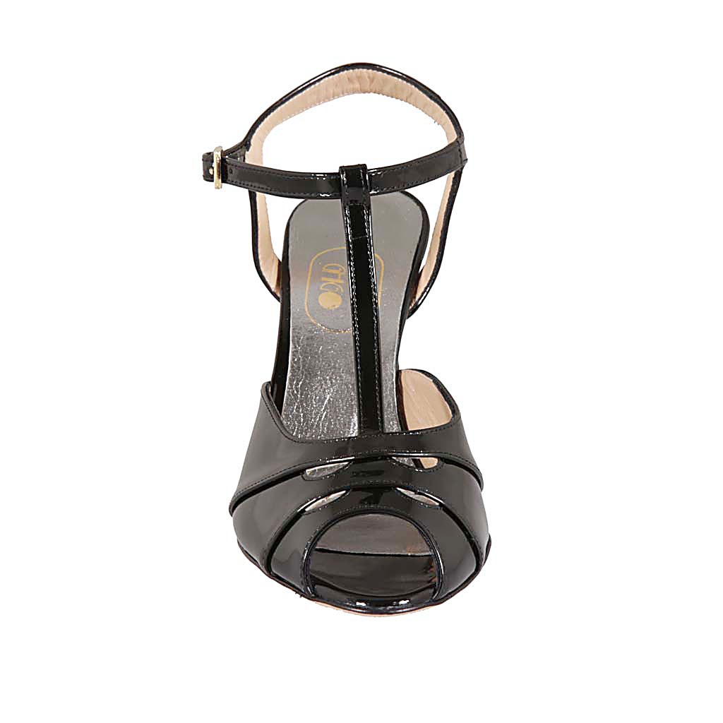 Sandalia para mujer en charol negro con cinturon tacon 8 - Tallas disponibles:  32
