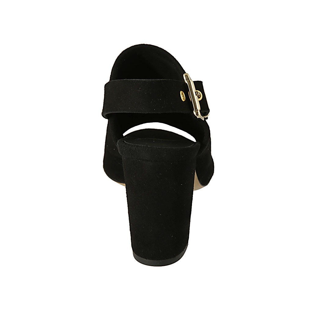 Sabo abierto para mujer en piel perforada de color cognac con plataforma y cuña 9