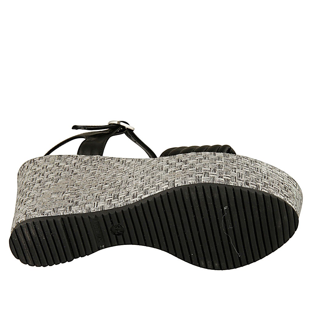 Sandalia para mujer con cinturon y plataforma en piel negra y tejido gris cuña 9 - Tallas disponibles:  42, 43