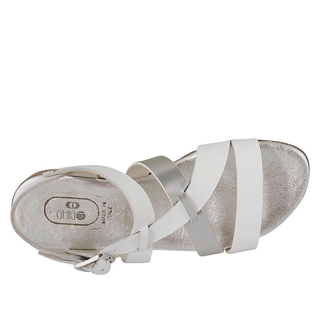 Sandalia para mujer en piel blanca y plateada metalizada tacon 2 - Tallas disponibles:  32