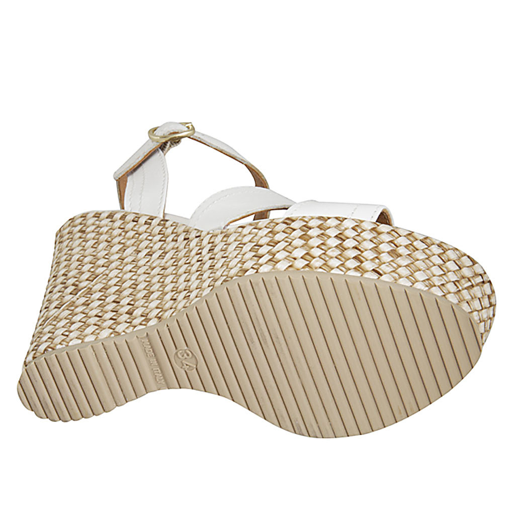 Sandalia para mujer con cinturon y plataforma en piel blanca cuña trensada 12 - Tallas disponibles:  43